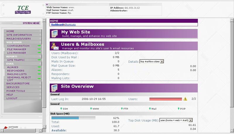 Our hosting servers run Ensim software. Our user control panels come with the following add-on programs. To view a screen shot of our user control panel, click | HERE |